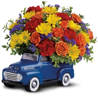 This arrangement designed for the car buff will certainly make their day special! Colorful flowers arrive in this special keepsake container.